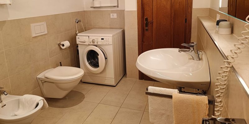APPARTAMENTO FAMILIARE "A" soggiorno con letto matrimoniale, balcone, angolo riposo, scrivania, TV, camera per due persone, cucina con zona pranzo, bagno con doccia, WC, bidè e fon. Posto macchina in garage gratuito.