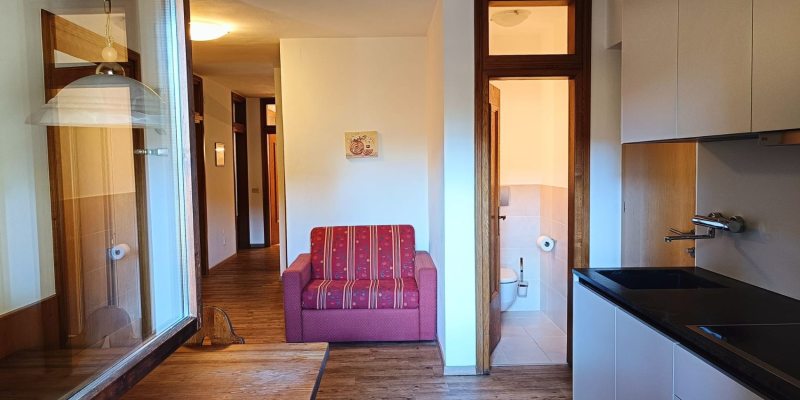 APPARTAMENTO "B" soggiorno con divano letto matrimoniale, balcone, scrivania, TV, camera per due persone, cucina con zona pranzo, bagno con doccia, WC, bidè e fon. Posto assegnato in garage.