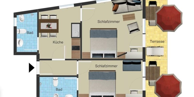 COMBINAZIONE APPARTAMENTO "C+Z" soggiorno con letto matrimoniale, angolo riposo, scrivania, TV, cucina con zona pranzo, lavastoviglie, bagno nuovo, balcone e camera doppia con letto matrimoniale e balcone, bagno nuovo con wc, bidè e fon. Un appartamento ampio con due stanze da letto, ognuno con proprio bagno e balcone. Posto macchina in garage gratuito.