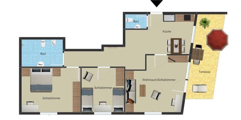 Appartamento a tre stanze con balcone, bagno+2 WC tipo BZ